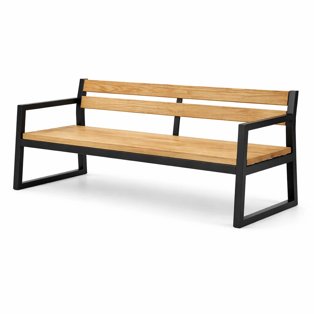 Bank aus eiche holz mit metallrahmen